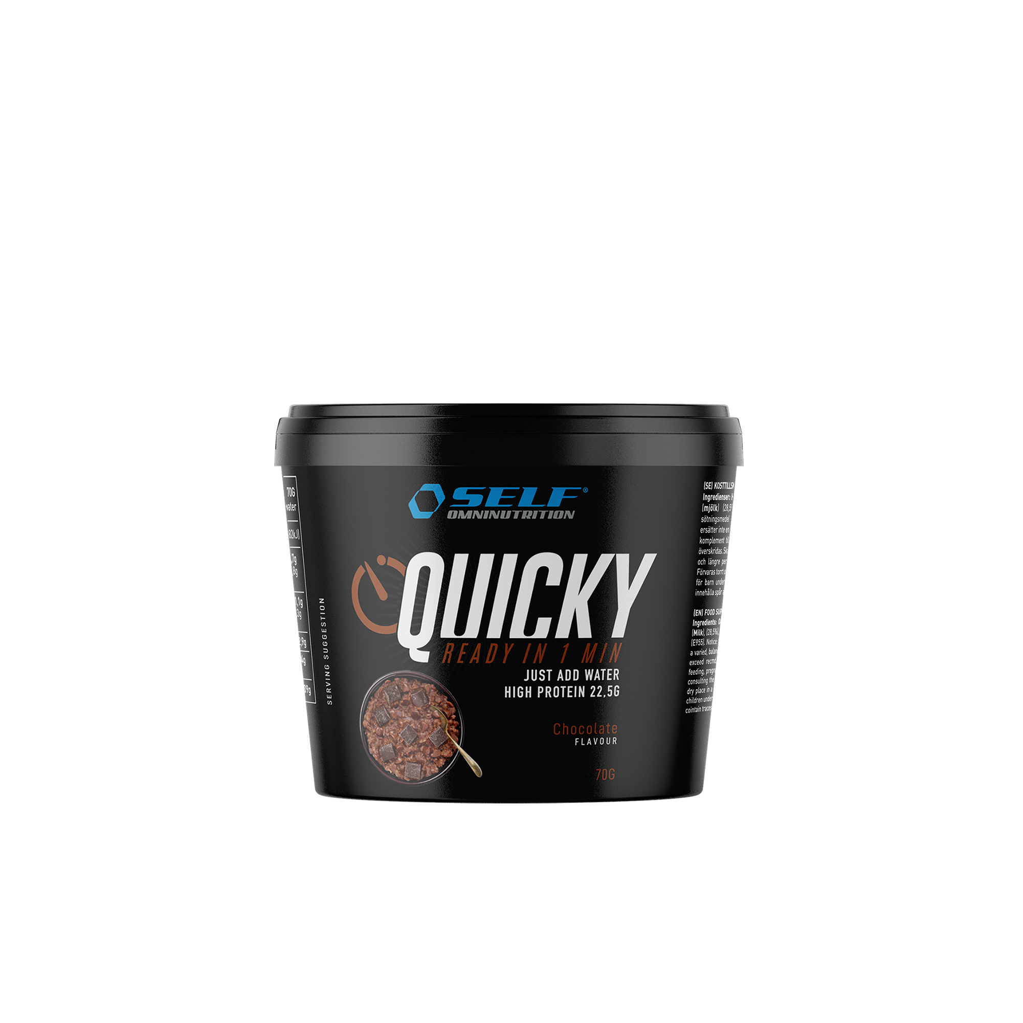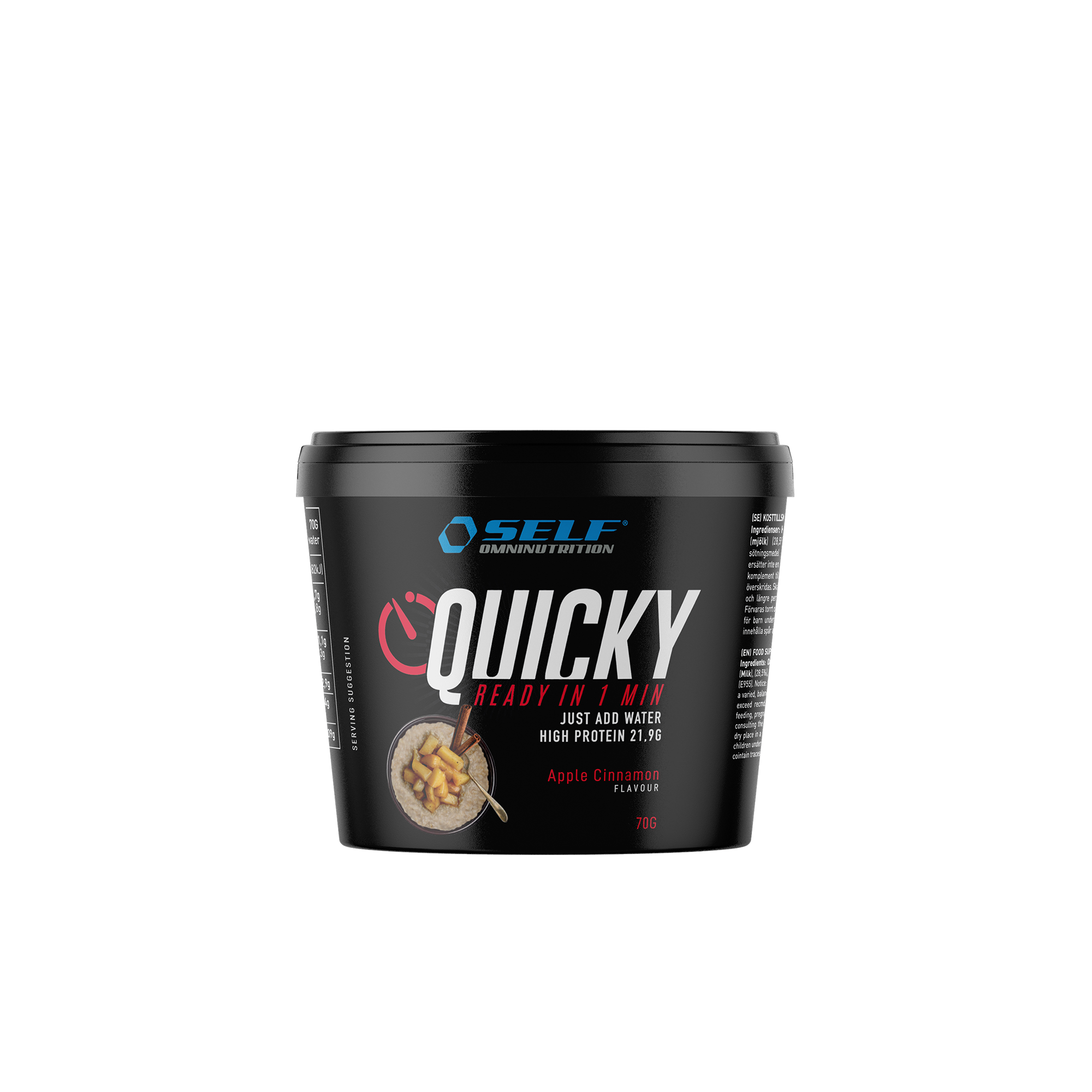 Med Bundle Quicky har du friheten att välja sex förpackningar av vår oemotståndliga Quicky, som finns i tre läckra smaker: Äpple och kanel, Choklad och Vanilj. Skräddarsy ditt paket som du vill med två alternativ: Komplettera förpackningen med din favoritsmak! Om du har en favoritsmak är det här det perfekta alternativet för dig. Välj sex förpackningar med samma smak och njut av Quicky precis som du vill ha den. Ta med den var som helst, när som helst! Oavsett om du letar efter ett näringsrikt mellanmål, en snabb frukost eller ett komplement till träningen före eller efter, är Quicky den perfekta lösningen. Med högkvalitativa ingredienser och ett högt proteininnehåll är varje Quicky alltid redo att ge dig energi och smak, var du än är.
