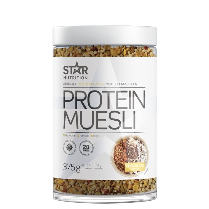 Välj Star Nutrition Protein Muesli, 375 g när du vill ge din kropp bästa möjliga näring och smakupplevelse – oavsett om det är till frukost, mellanmål eller som proteinrik topping.