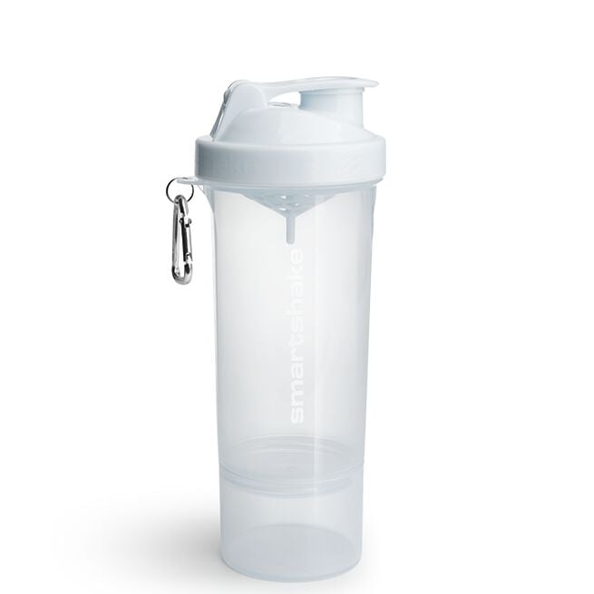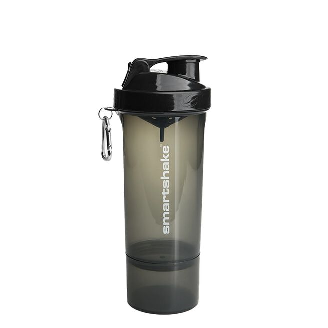 SmartShake tog branschen med storm när man lanserade sina genomtänkta multishakers med exktra fack för kosttillskott. Snygg design, fantastisk funktionalitet och ett självklart val för många tränande idag. Precis som namnet avslöjar är SmartShake Slim en mer slimmad version än SmartShake original. Smalare och lite mindre, men exakt lika snygg och praktisk som alltid. SmartShake Slim rymmer 500 ml vätska om den fylls hela vägen upp till locket och erbjuder ett monterbart/avtagbart extrafack för att kunna ta med ca 1 dl av önskat kosttillskott.