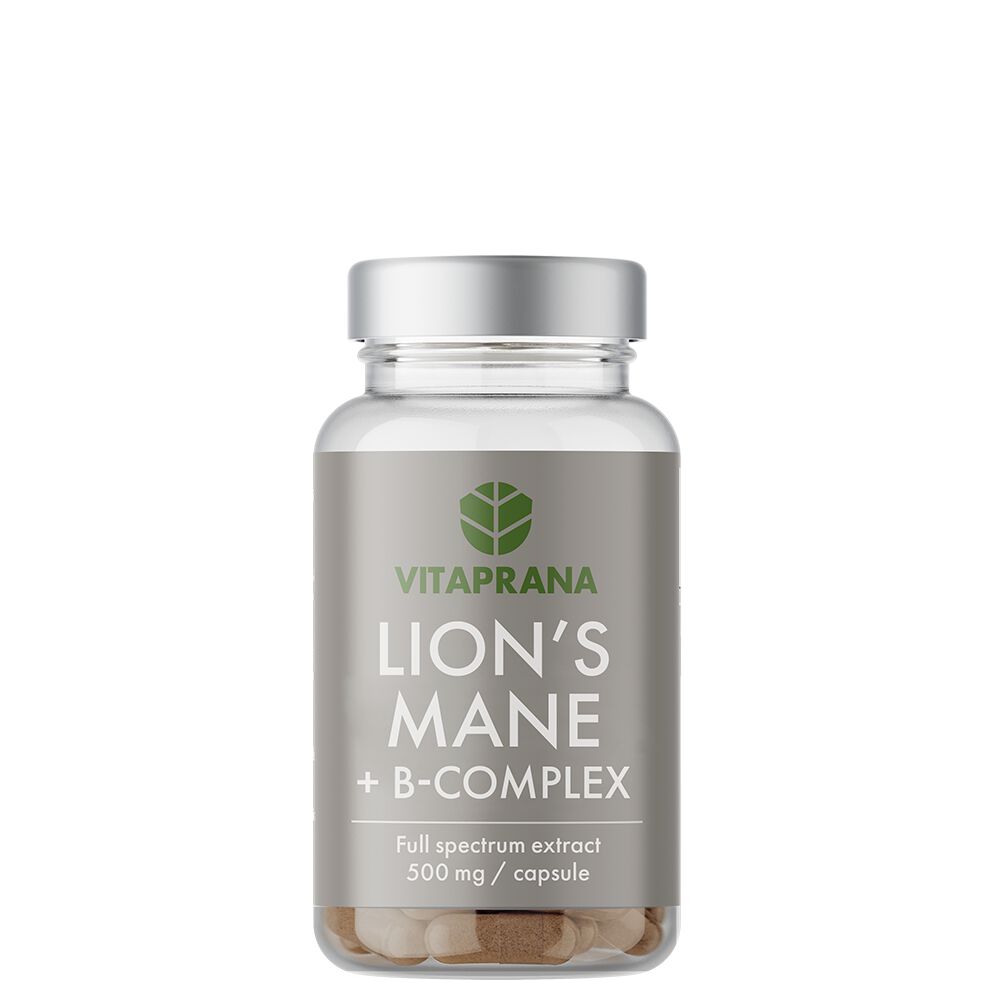 Lion's mane + B complex kombinerar ett ekologiskt extrakt av Lion's mane-svamp med utvalda B-vitaminer. Varje kapsel ger en standardiserad mängd av både svamp och dess aktiva ämnen.