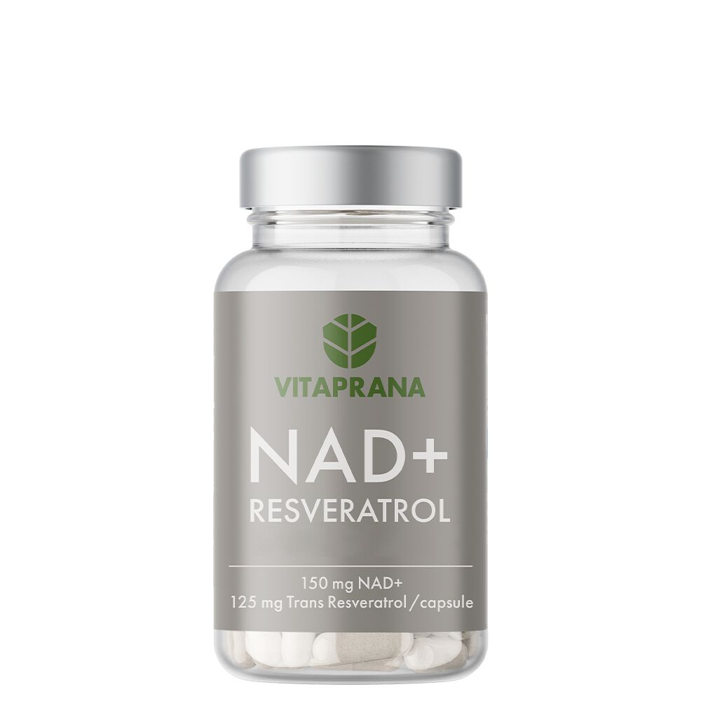 Denna produkt erbjuder en kombination av NAD+ (nikotinamidadenindinukleotid) och trans-resveratrol, två ämnen som förekommer naturligt i kroppen och växtriket. Varje daglig dos ger totalt 300 mg NAD+ och 250 mg trans-resveratrol. Kapslarna är syraresistenta för att skydda innehållet genom magen och möjliggöra ett effektivt upptag i tunntarmen.