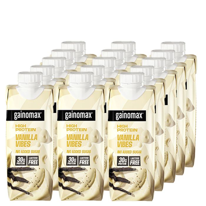 Med Gainomax High Protein Drink 250 ml får du en välsmakande och krämig ProteinDryck som passar lika bra efter ett tufft träningspass som ett näringsrikt mellanmål under dagen. Den höga proteinhalt på 30 gram per flaska hjälper dig att optimera muskeluppbyggnaden och återhämtningen efter fysisk aktivitet.